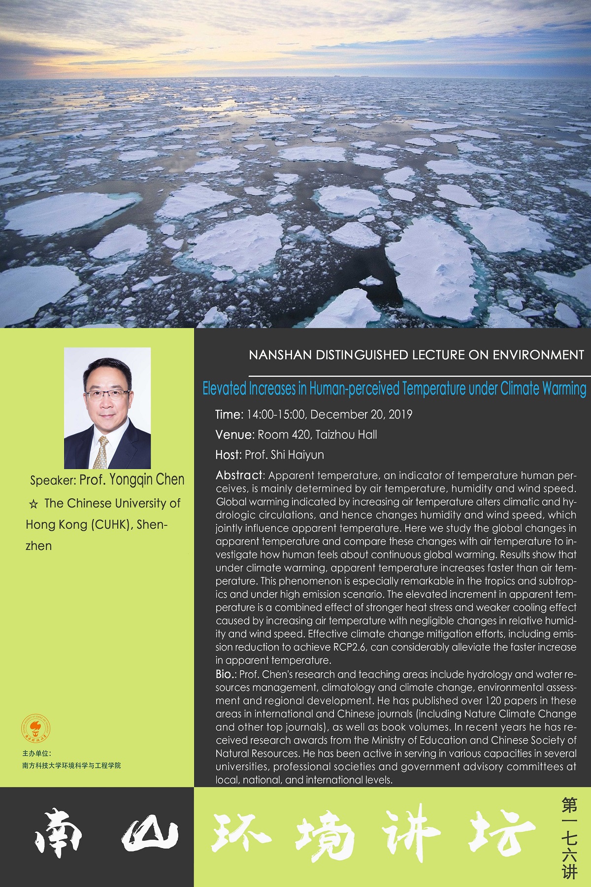 学术讲座 Elevated Increases in Human-perceived Temperature under Climate Warming 演讲人:Yongqin Chen 时间:2019-12-20 , PM 02:00 地点:台州楼420会议室